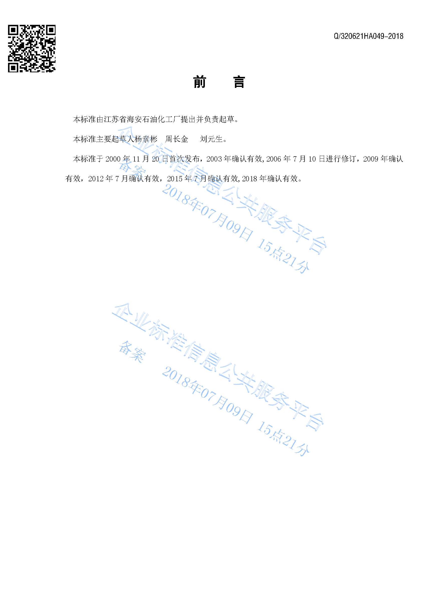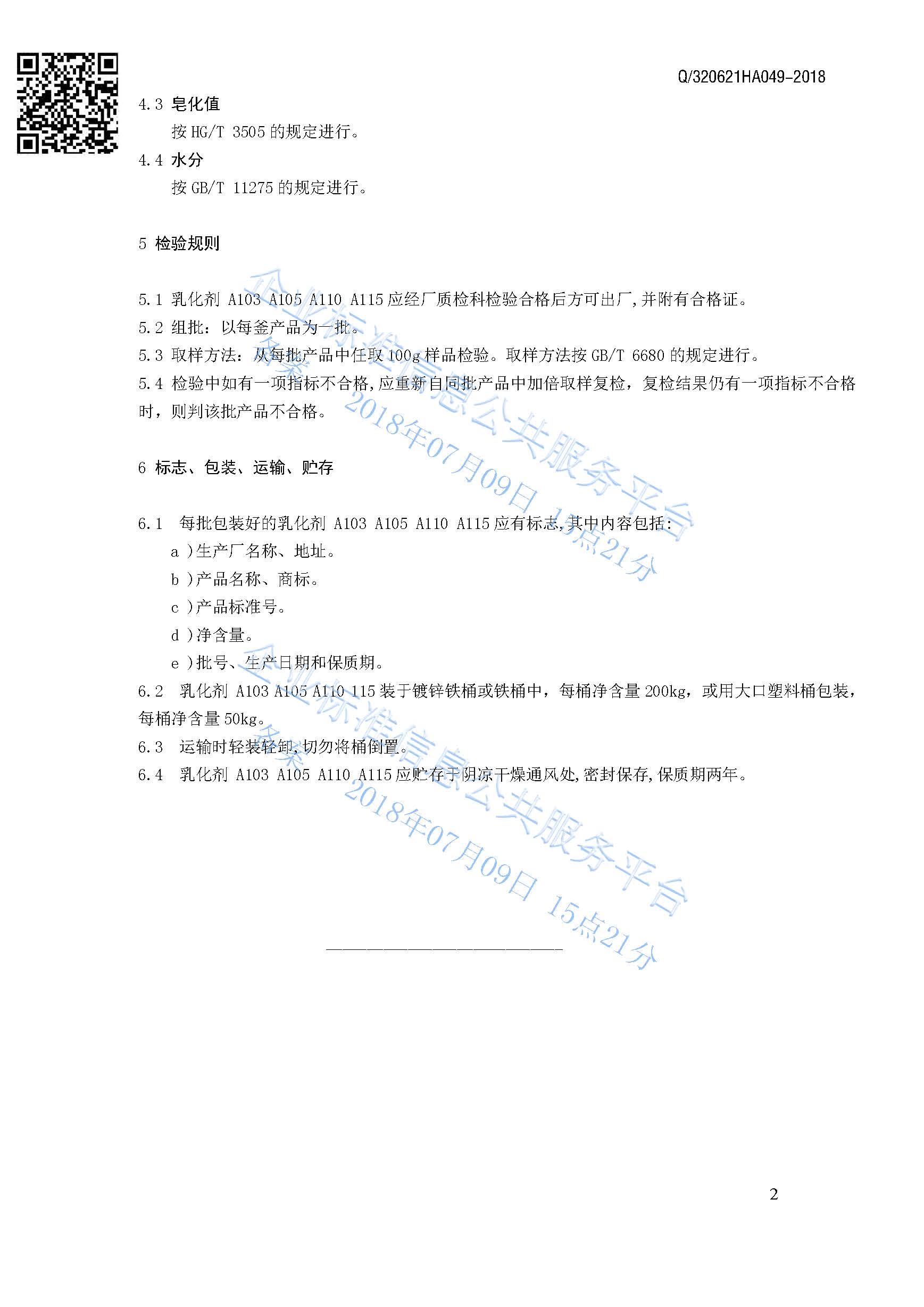Q/320621HA049-2018 乳化剂A-103 A-105 A-110 A-115产品标准