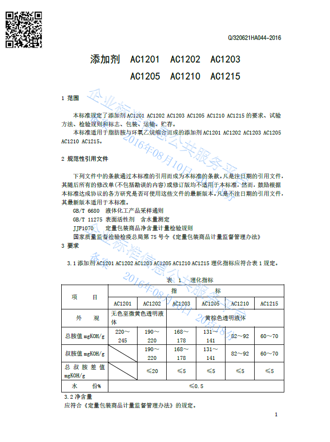 Q320621HA044-2016 添加剂AC-1210系列产品标准